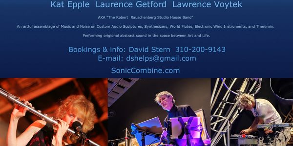 The alternative audio performance ensemble, "Sonic Combine" consists of long-time friends, Lawrence Voytek, Kat Epple, and Laurence Getford. Their abstract sound is not always musical, sometimes discordant, regularly beautiful, often powerful, and truly interesting. It is performed on metal sculptures, electronic instruments, world flutes, and Theremin.